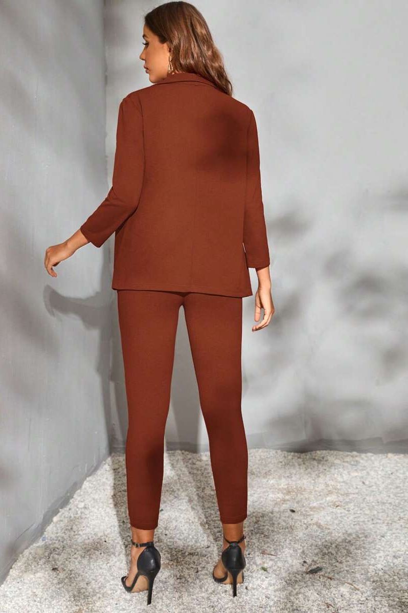 Souprava Maria přináší novou definici profesionální elegance s moderním akcentem. Tato tmavě modrá souprava, skládající se z asymetrické dlouhé blůzy s prodlouženými detaily zipu a přiléhavých slim kalhot, nabízí styl, strukturu a diskrétní sofistikovanost. Ideální pro chladnější roční období, Maria kombinuje sofistikovanost a působivý design – perfektní pro ty, kteří přistupují k práci s odhodláním a šarmem.