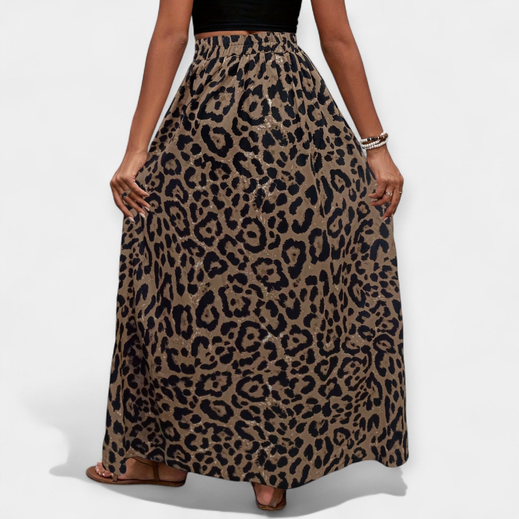 Tato leopardí midi sukně, která vyzařuje ženskost a dynamiku, je dokonalým módním prohlášením pro léto. Rozparek na spodním lemu dodává pohyb a přitažlivost, zatímco pohodlný střih ji činí ideální pro jakoukoli chvíli dne.