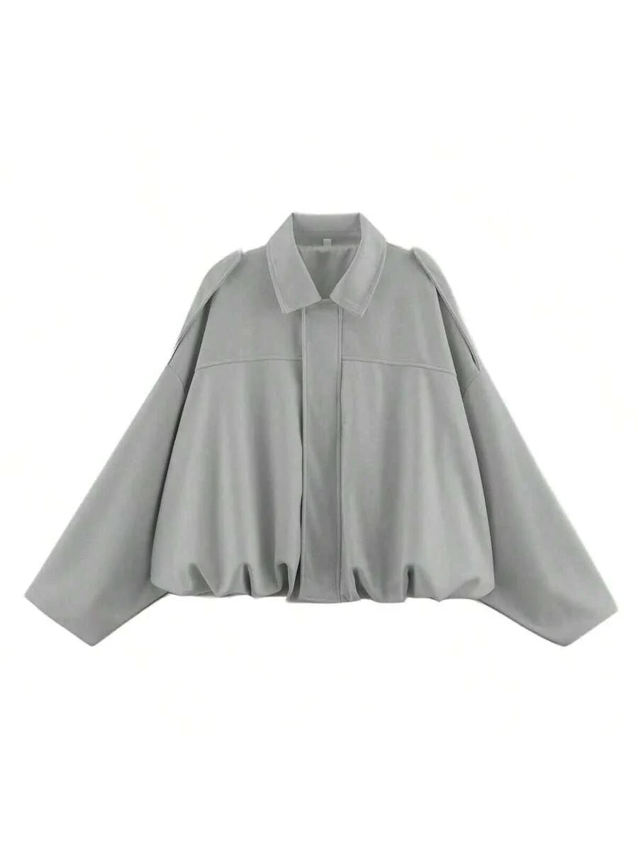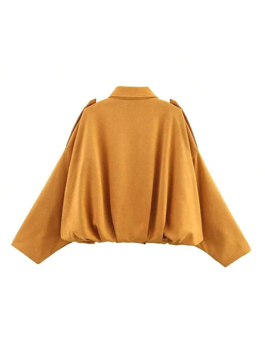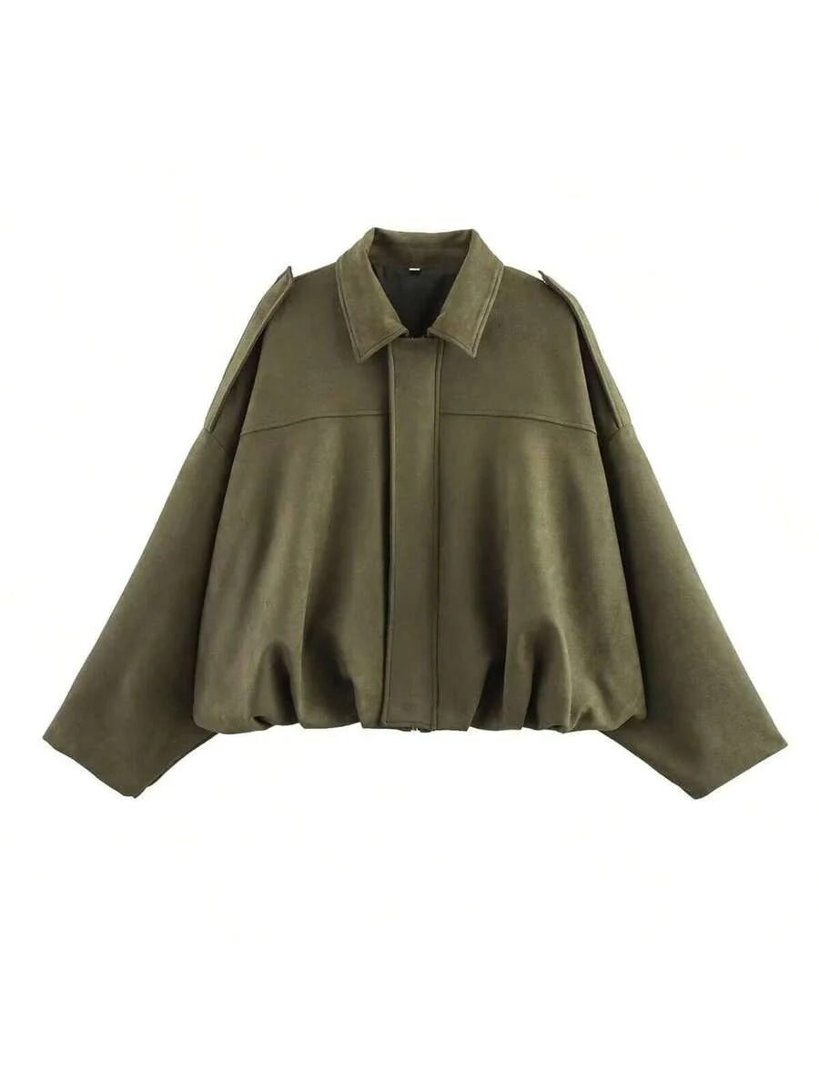 Dámská volná vintage bunda – klasický límec, dlouhý rukáv, podzimní styl