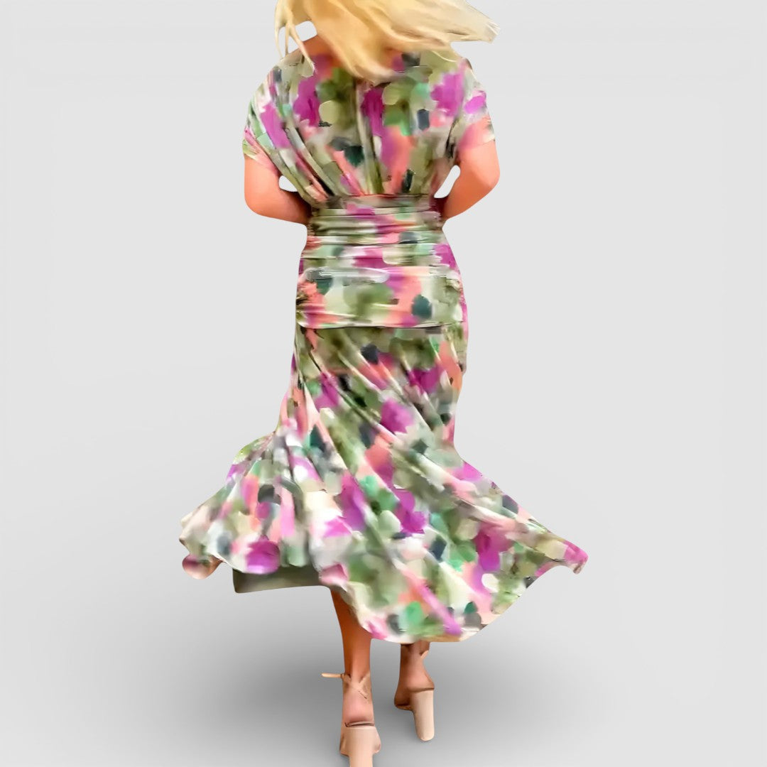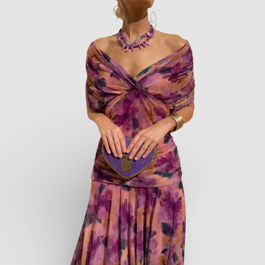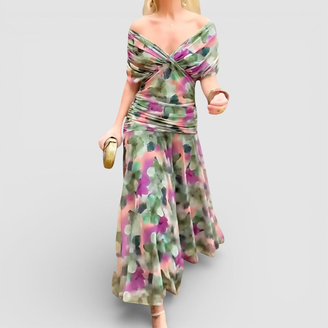 Celeste™ Romantické Maxi Šaty okouzlí snovým květinovým vzorem a krásně splývavou siluetou. Navrženy tak, aby lichotily postavě s jemným výstřihem do V a měkkým plisovaným pasem, šaty se pohybují bez námahy s každým krokem — což z nich činí ideální volbu pro oslavy, elegantní večeře a nezapomenutelné okamžiky.