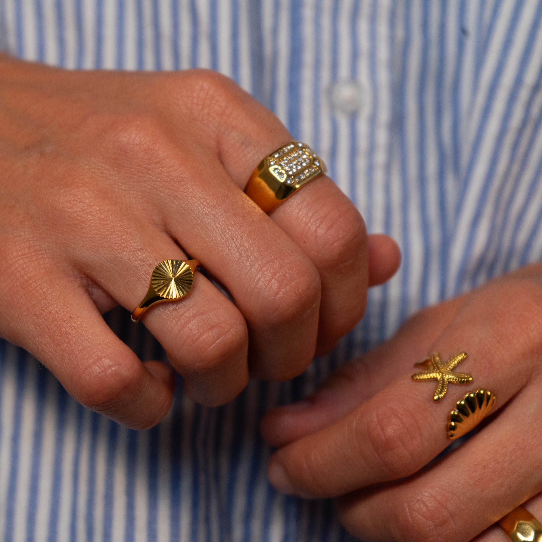 Naše SUN prsten má vzhled, který je elegantní a jednoduchý. Detailní povrch prstenu připomíná sluneční paprsky a také poskytuje krásný lesk na slunci. Prsten má minimalistický vzhled, který můžete výhodně kombinovat s dalšími prsteny a vytvořit tak krásné a jedinečné kombinace.